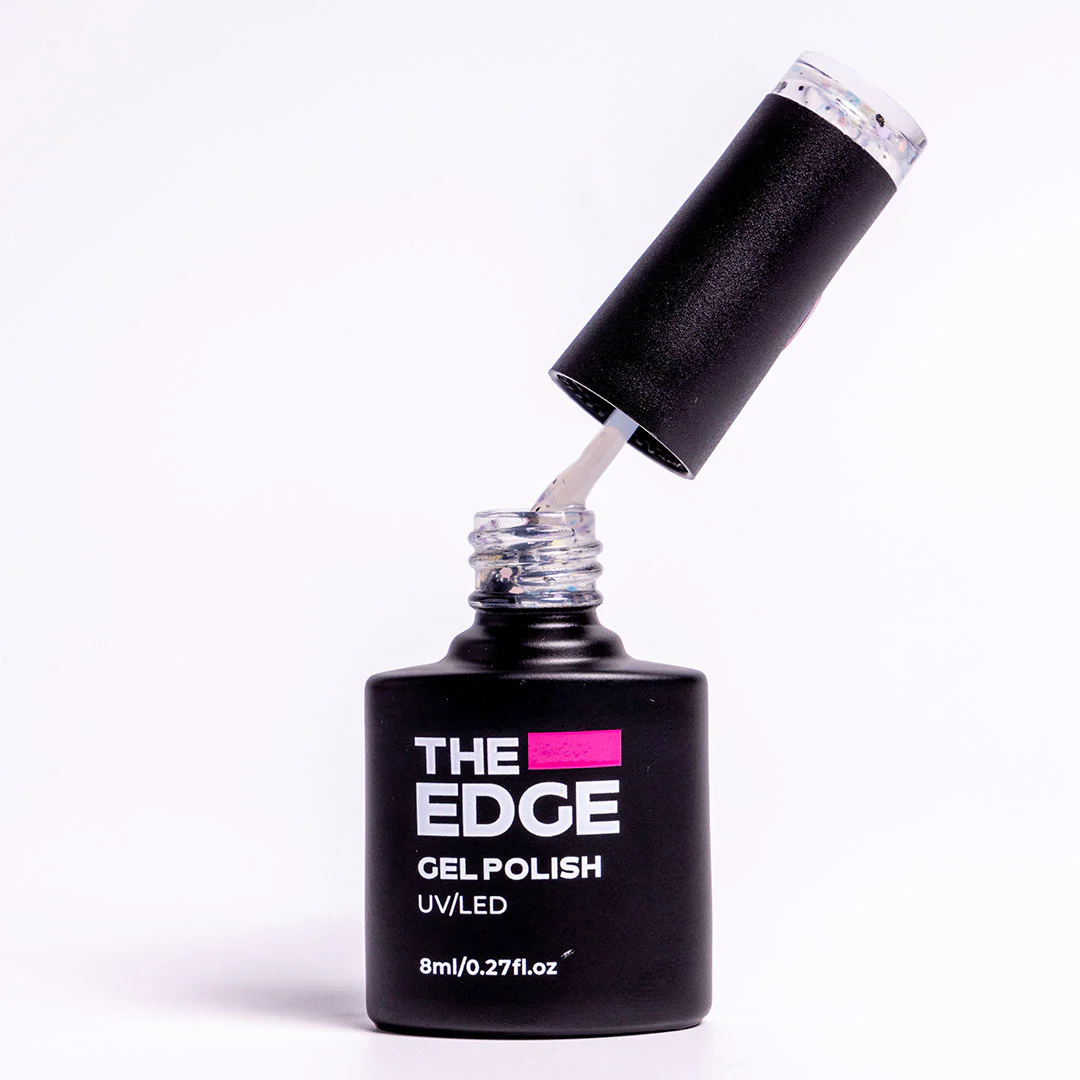 The Confetti Top Coat Gel Polish reduces filing and buffing time, gives a perfect glossy finish with no tacky residue, perfect for using with our mirror powders.