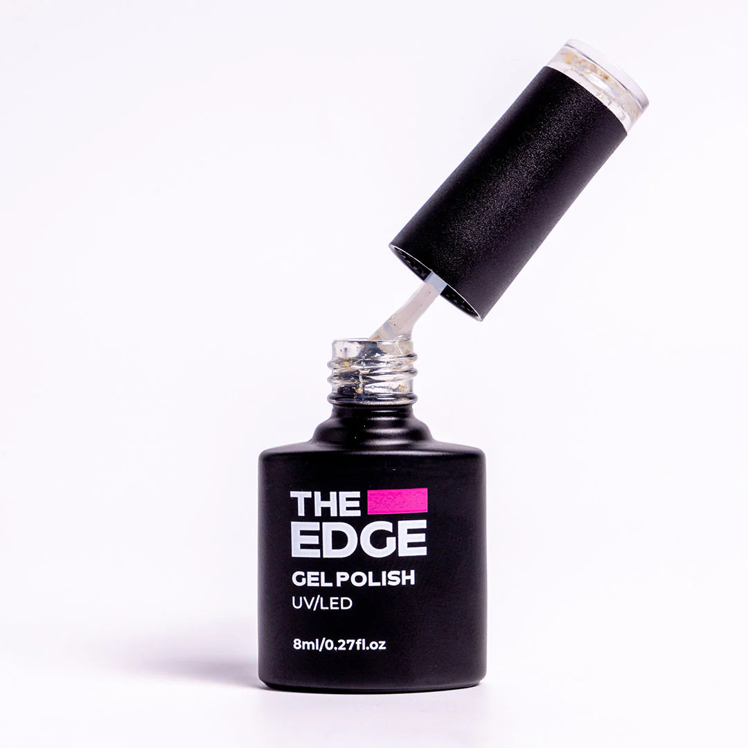 The Gold Flake Top Coat Gel Polish reduces filing and buffing time, gives a perfect glossy finish with no tacky residue, perfect for using with our mirror powders.
